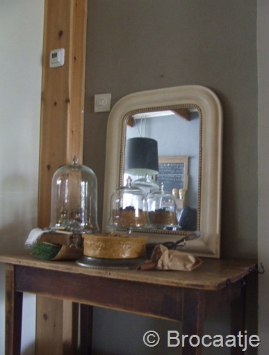 Dus vandaag alles eraf en opnieuw ingericht,met glazen stolpen,taarten (waar je niet dik van wordt :-) ) en wat oude bak spulletjes.
